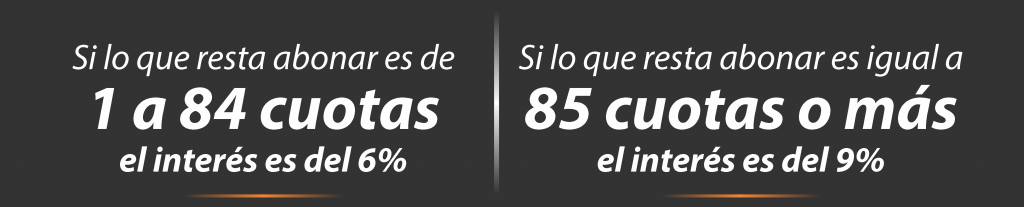 El interés se calcula sobre el saldo pendiente de pago, siendo este fijo, anual y directo. Siempre actualizado según lo indicado por la Cámara Argentina de la Construcción.